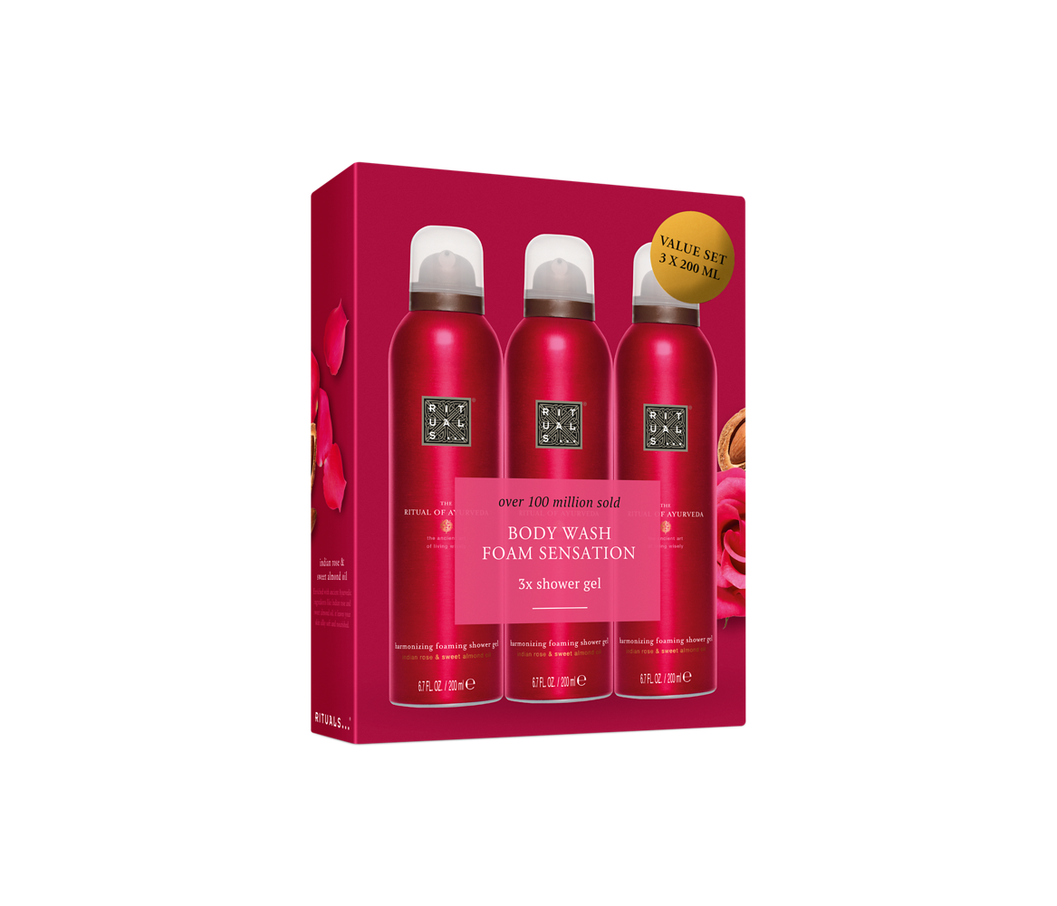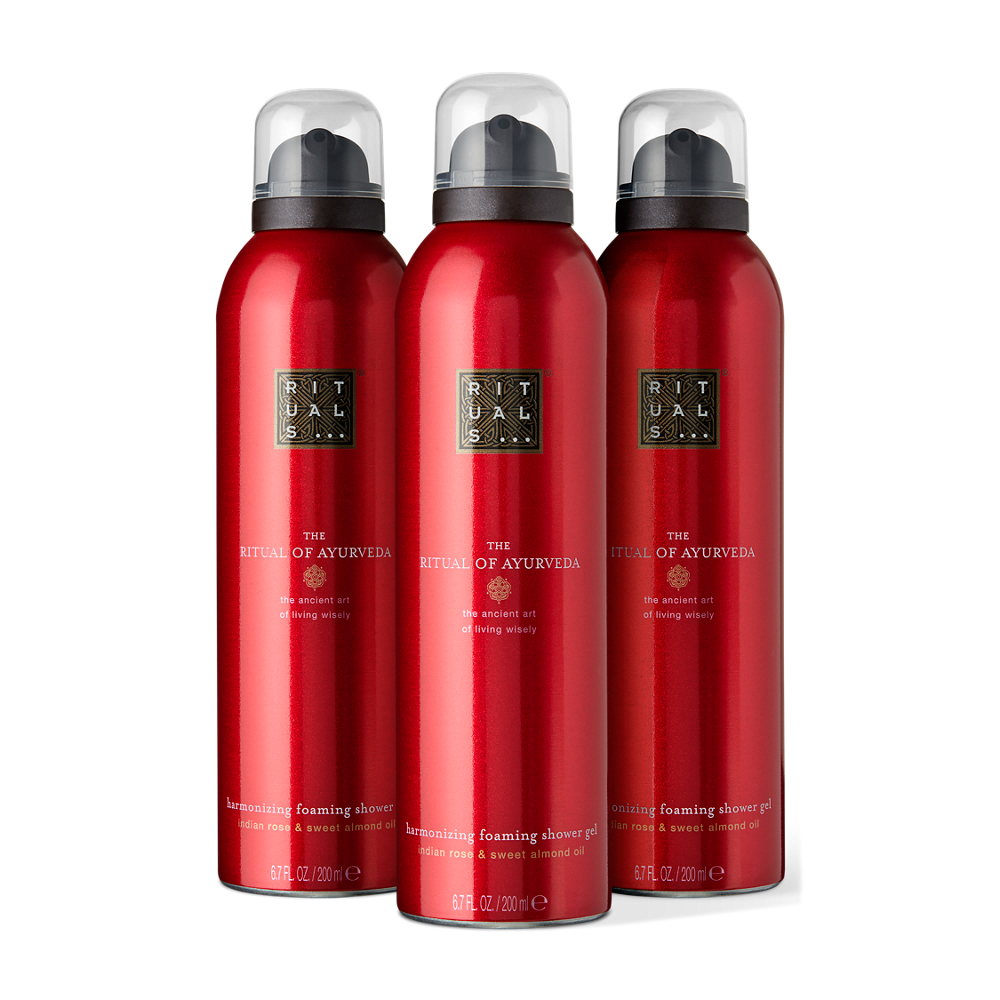 Rééquilibrez vos énergies grâce à la mousse de douche The Ritual of Ayurveda. S’inspirant de la philosophie traditionnelle de l’Ayurvéda, elle vous aidera à harmoniser le corps, l'esprit et l'âme. Ce coffret cadeau raffiné contient trois mousses de douche grand format, pour vous permettre de profiter pendant plusieurs mois des ingrédients et de la senteur de la rose indienne et de l’huile d’amande douce.